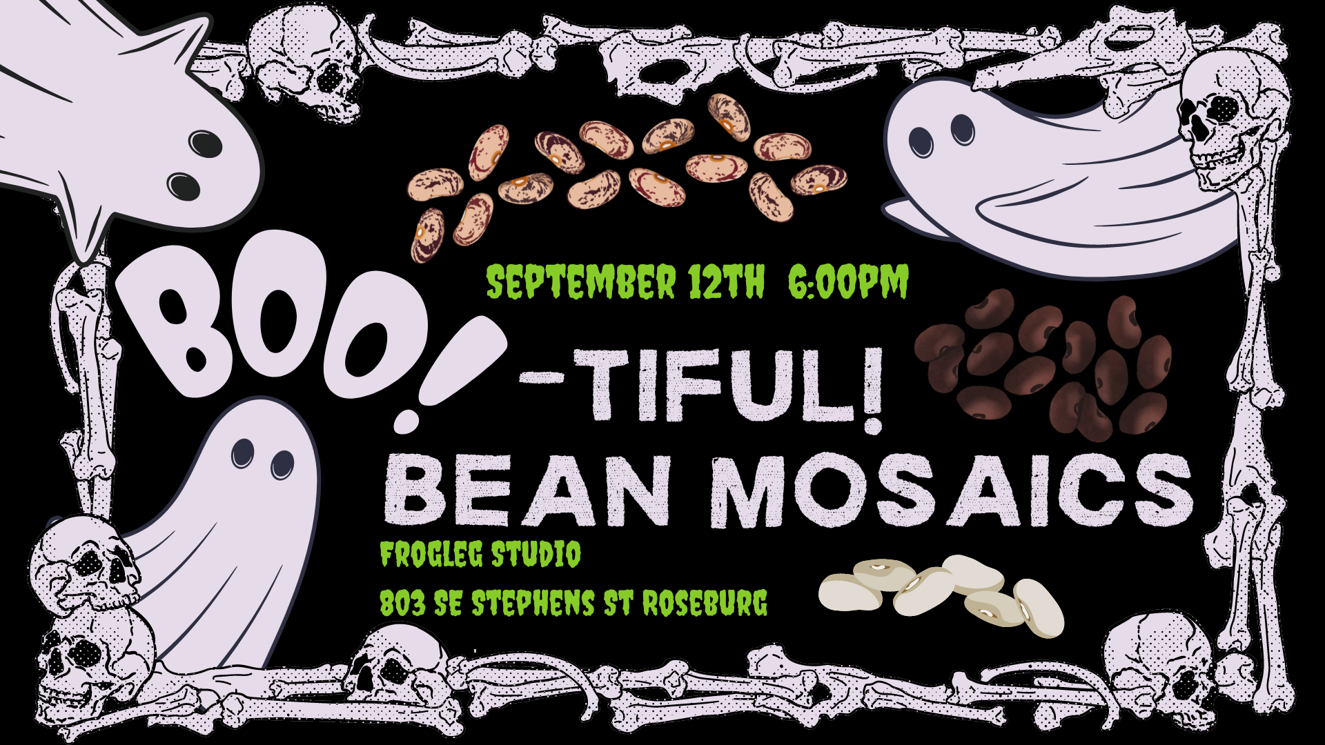 Embrace the spooky season with our Boo-tiful Bean Magic Mosaic workshop! Join us for a creative afternoon where you’ll craft stunning Halloween-themed mosaics using dry beans. We’ll provide all the materials and guidance you need to design and assemble your own festive artwork. From ghoulish ghosts to wicked witches, let your imagination soar and take home a bewitching piece of Halloween art to display or gift. Come for the fun and leave with a unique masterpiece that captures the spirit of the season!